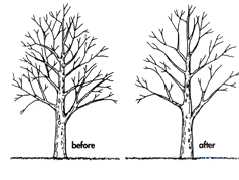 - Minska storleken på ett igenvuxet träd minska vikten på tunga grenar.